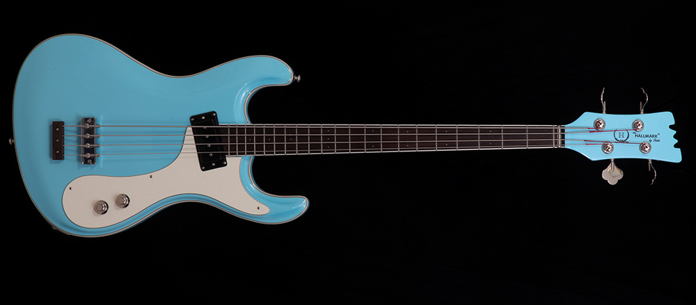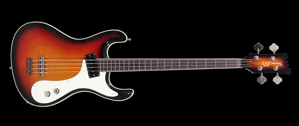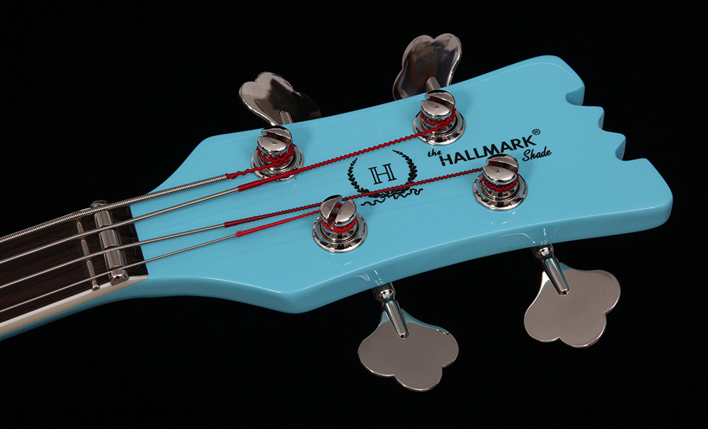 This classic bass offered in 1963 with daring design and punchy low tones is a classic! With improvements engineered by Shade, you will notice this bass roadworthy and ready for action! You will get every promise of top of the line performance, ease of playability, quality of tone and sheer luxury of finishes and appointments. This bass spells "luxury" with graceful classic lines in the carved top designed in 1959 by Joe Hall and Semie Mosley. You will notice with the 32" scale length and wider neck, this bass is meant to be played. It only takes a second to notice the sustain and tone thanks to our exclusive Hallmark locking bridge with solid brass chrome plated bridge saddles. Designed by Bob Shade each individual saddle has a locking pin under the bridge for stability and sustain. There is a solid rosewood tailpiece for beauty and tonality. This 63 is a "set neck" bass for that classic mellow tone with punchy lows.
