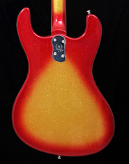 This classic bass offered in 1965 with daring design and punchy low tones is a classic! With improvements engineered by Shade, you will notice this bass roadworthy and ready for action! You will get every promise of top of the line performance, ease of playability, quality of tone and sheer luxury of finishes and appointments. This bass spells "luxury" with graceful classic lines in the carved top designed in 1959 by Joe Hall and Semie Mosley. You will notice with the 32" scale length and wider neck, this bass is meant to be played. It only takes a second to notice the sustain and tone thanks to our exclusive Hallmark locking bridge with solid brass chrome plated bridge saddles. Designed by Bob Shade each individual saddle has a locking pin under the bridge for stability and sustain. There is a solid rosewood tailpiece for beauty and tonality. This 65 is a "bolt on neck" bass for that classic "snap" with punchy lows and mids. With this dual pickup bass if you want more highs, mids or lows, simply flip the switch and it will be hard to believe the full selection of tones!
