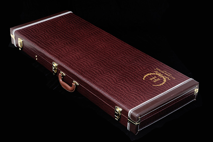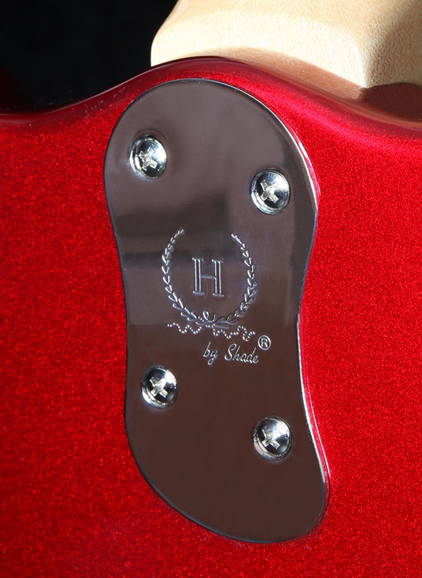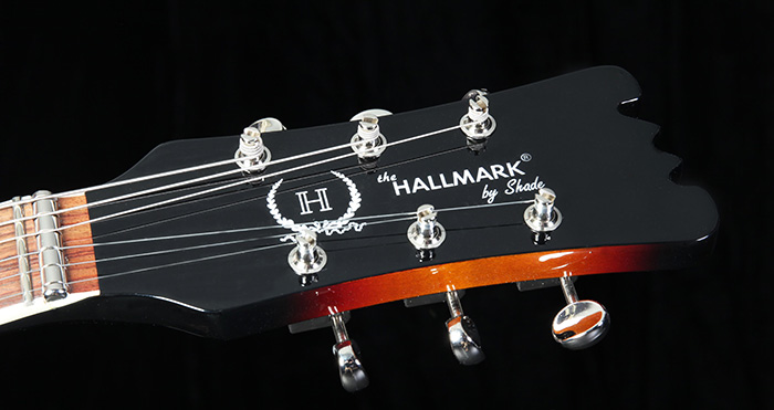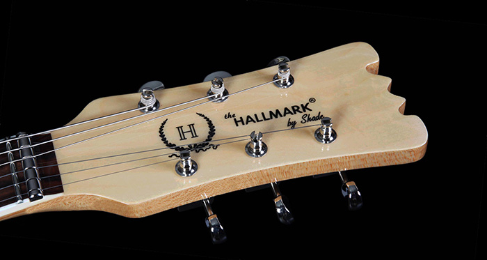 Two exclusive high output wide range pickups for the unique Hallmark classic sound. The "SHADE" needle bearing die cast tremolo for effortless play ability and perfect return to exact pitch. With the 1+5/8" width at the zero fret (nut),and crowned fretwire, this guitar is made to play! We have added a brass neck plate that gives this 65C model guitar even more brilliance and clarity.