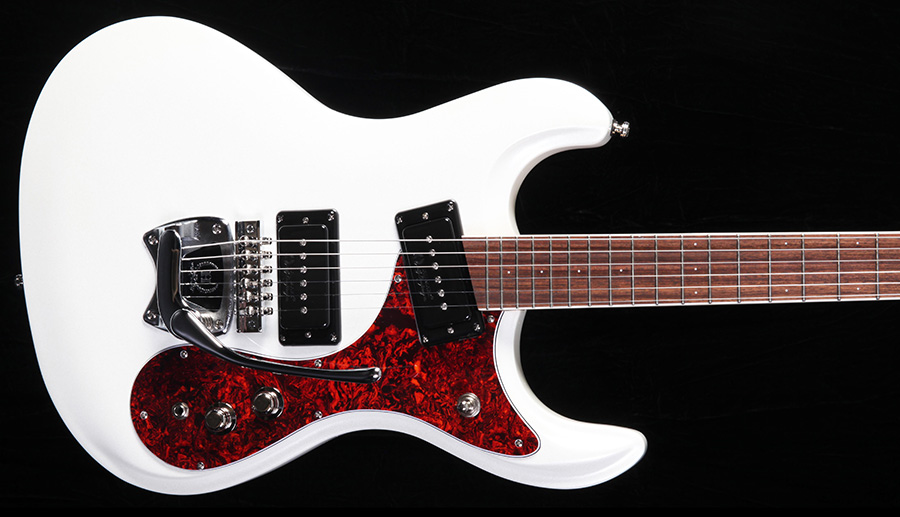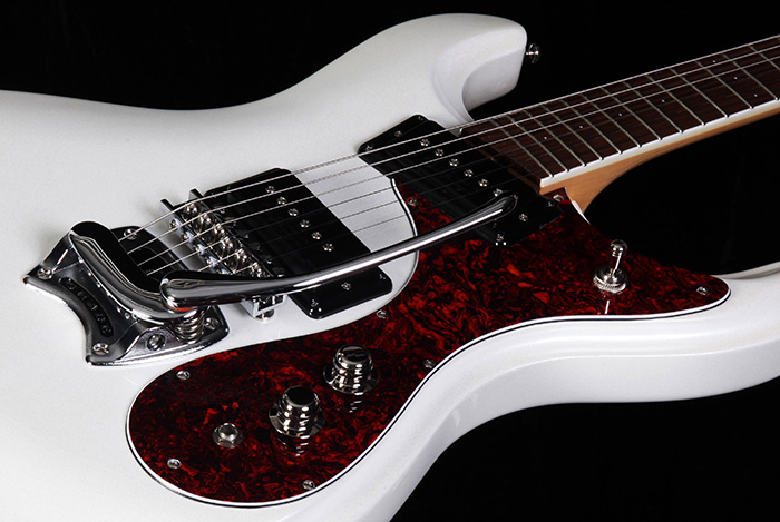 These pickups have the same tone as the vintage models but without the squeel and hum. Many top pros agree the sound is absolutely unique. We have employed the same improvements in this model as we have in all of our models keeping the key ingredients such as a re-designed locking bridge by Shade which creates more sustain, and provides correct intonation and string alignment.