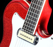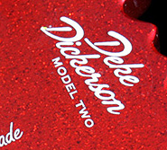 In keeping with the theme of the Deke Dickerson signature we introduced years ago that rivaled Joe Maphis's famous double neck, this all new Deke Dickerson "Model Two" has the key components but has shed it's skin of the ultra fancy ginger bread components for two very important reasons. We had inquiries from guys who could not afford the Deke 1 and also some who did not want all the ultra fancy components for their every day go to guitar, but wanted the sound and play of that guitar. Later I saw the video of Don Rich playing with Buck Owens with a Mosrite Semie Moseley guitar specially built for Don in 1968. It had the same shape and a tone chamber just like our last Deke Model 1, with a Mosrite/Dobro pickups and an "F" hole and larger pickguard. A light went off in my head and I immediately thought...... Deke Dickerson Model Two!! I contacted Deke and he loved the vision as well. One of Deke's requirements was no "F" hole, so that was taken out of the design. I was able to locate a box of NOS Mosrite/ Dobro pickup surrounds in storage out in Bakersfield Ca. (flipped me out) just for this new project which gives the guitar the exact look while retaining the key ingredients of our JM-6 Pickup. The rest is now Hallmark history!!