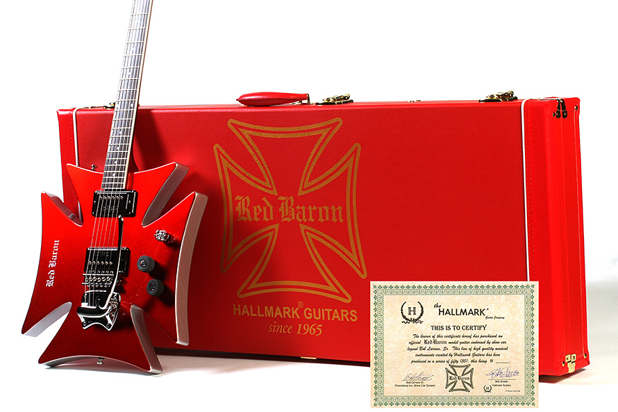 One of my most exciting projects was building the Red Baron show car in 1968. Commissioning car customizer Chuck Miller from Detroit was a stroke of luck, as he showed great genius in building the stunning vehicle. The Red Baron show car was an instant hit and number 1 attraction among hot rod enthusiasts. The Red Baron has not only stood the test of time, but still is growing in popularity today. It gives me great pleasure to introduce the "Red Baron" guitar by Hallmark Guitars USA with special Red Baron show car appointments built right in!