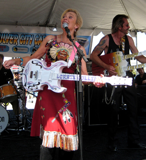 (Suzy and Buddy are both playing the set-neck custom Sweptwing models hand-built by Bob Shade.)
