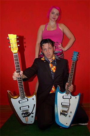 When Deke hit's the trail with the All Stars they use the Hallmark Swept-Wing guitars exclusively! Complete with groovy Go Go Girls this is a show you don't want to miss. That is non other than Garrett Immel from the Ghastly Ones on second guitar! What a great line up! Dekedelic!